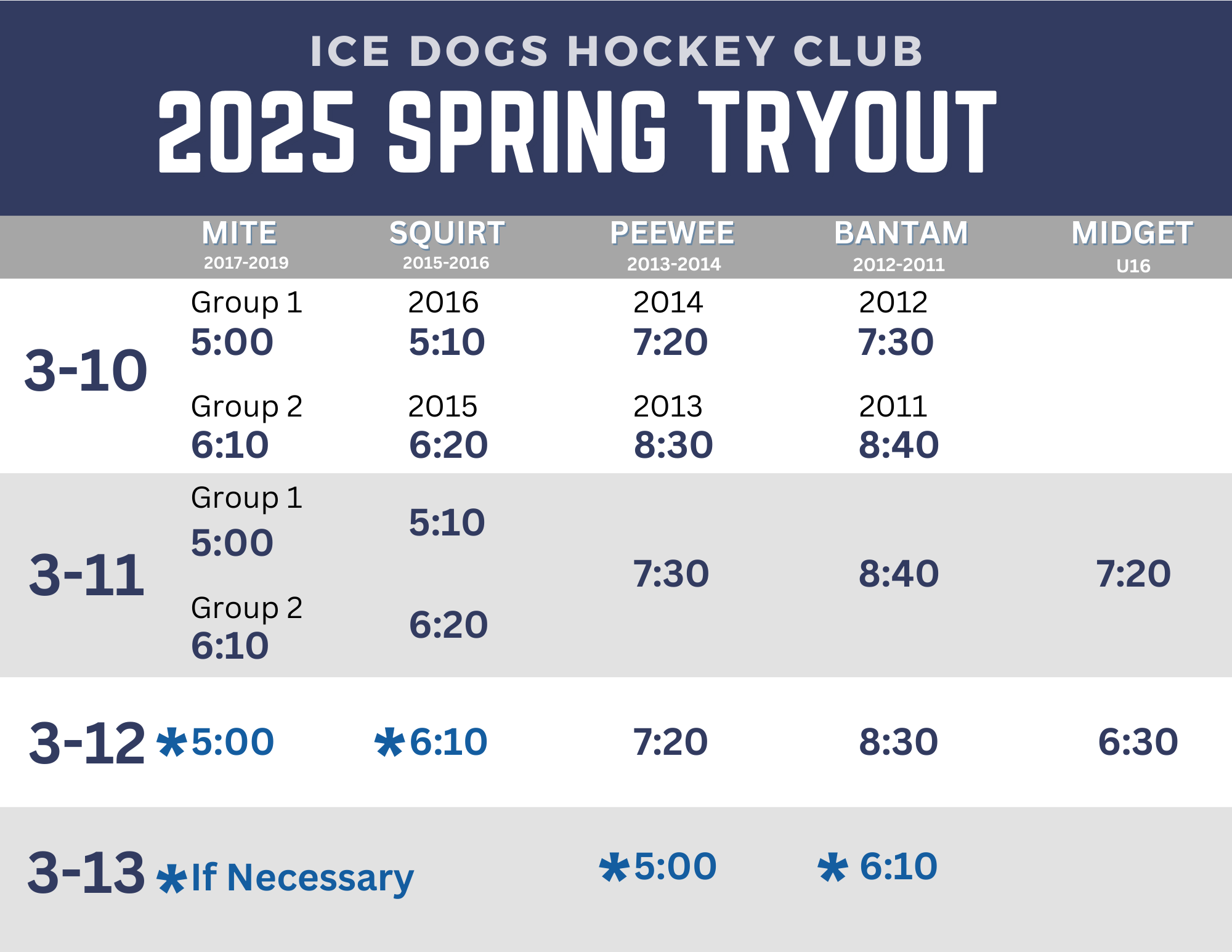 Ice Dogs Hockey Club will hold tryouts March 10th, and will run through May 2025.