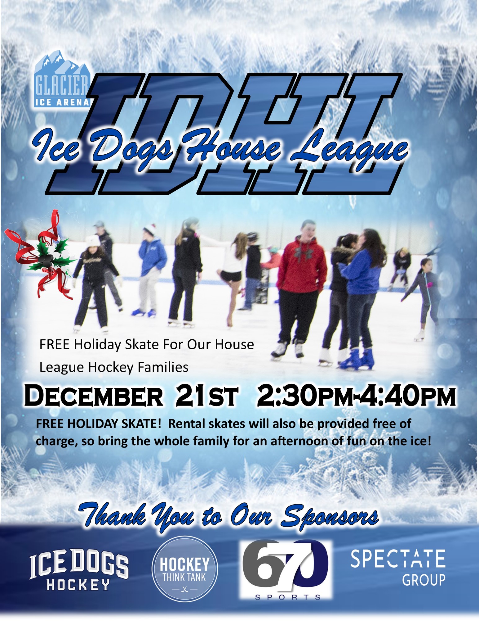 The IDHL House League Season will begin with a series of Evaluation Skates that all registered players must attend. Evaluation Dates & Times will be announced the first week of September. The evaluation process enables the Glacier Hockey Directors and Staff to appropriately place the players on the teams that will form the league. There will be 2 or 3 evaluation dates and times for players and ideally you should attend all three of these evaluations. If your player is unable to attend please contact Sandy Anderson via email at sanderson@glacierskate.com