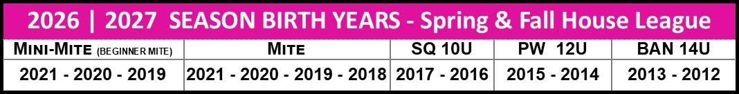 Teams will typically skate on Saturday and /or Sunday most weekends. Season for Spring House League is April & May.